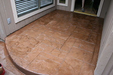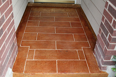 Colors and patterns for stamped cement are often chosen to blend with other stone, tile or textured concrete elements at the residence. Complex designs incorporating steps, courtyards, and fountains can be achieved when patterns are pressed into the concrete. Stamped concrete can also be blended with other decorative concrete elements such as exposed aggregate finishes and acid-etch staining, along with a particular pattern, such as running bond brick, hexagonal tile, worn rock or stone. Concrete provides the perfect canvas for creating an economical replica of more expensive materials, and yet still