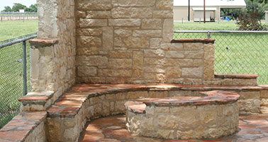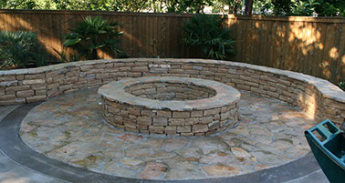 There is a certain romantic ambiance that surrounds an outdoor fireplace. The glow of the flickering flame invites guests to sit down, relax and enjoy life. Properly designed fire features encourage conversation and sooth the soul.